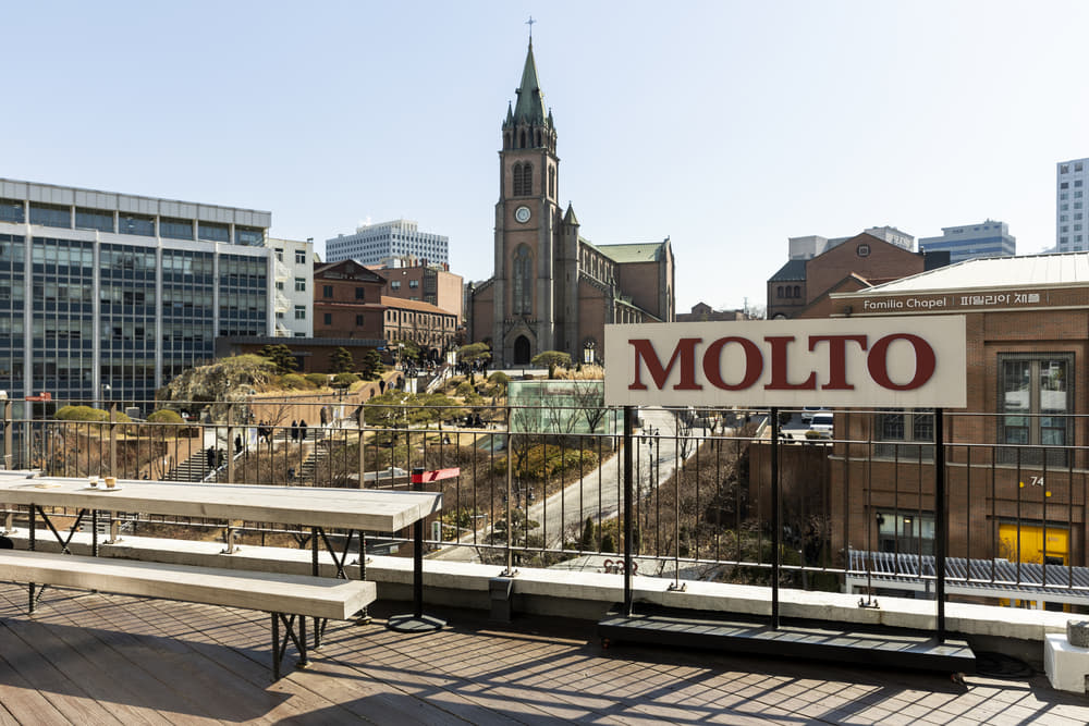 Di Molto Espresso Bar, anda boleh menikmati pemandangan terindah di Myeong-dong dan menjadi salah satu kawasan yang mempunyai banyak perkara untuk dilihat, dinikmati dan dimakan di Seoul. Secawan espresso sambil menikmati keindahan Katedral Myeongdong dan Namsan betul-betul di hadapan anda memberikan pengalaman istimewa.