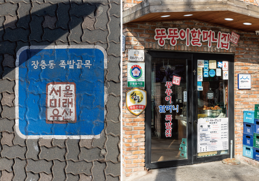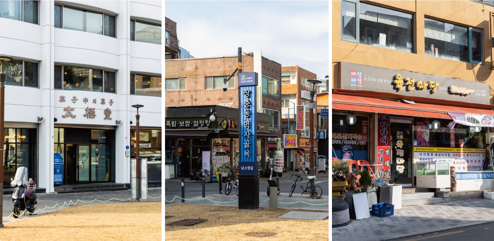 Termasuklah 'Namsan', yang mempunyai mercu tanda Seoul iaitu Menara N Seoul, 'Taegeukdang', kedai roti dengan sejarah yang panjang selama 76 tahun, dan apabila anda memikirkan Jangchungdan, jokbal dan naengmyeon serta merta secara semula jadi pasti akan terlintas di fikiran anda lorong-lorong dipenuhi Dengan restoran terkenal dan kedai yang telah lama bertapak, peniaga dan penduduk tempatan yang masib berjuang untuk mengekalkannya. Jangchungdan-gil adalah kawasan tempatan yang membawa anda merasai sejarah dan tradisi Seoul.