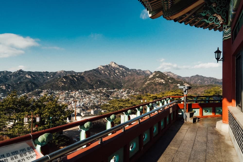 Apabila anda tiba di Pavilion Bugak Palgakjeong sambil menikmat aktiviti berjalan-jalan melalui hutan di sepanjang Bugak Sky, anda akan melihat pemandangan yang tenang namun megah selangkah dari pusat bandar.