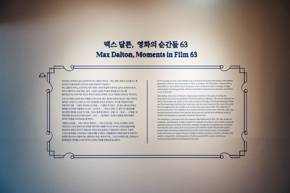 Pameran perancangan diadakan tiga kali setahun dan pameran solo oleh ilustrator terkenal dunia Max Dalton sedang dijalankan kini. Pameran yang menampilkan sejumlah 104 karya yang dibahagikan kepada tiga bahagian bertajuk 'Moments of Cinema', 'The Wes Anderson Collection', dan 'Moments of Max'. Lebih menarik lagi, karya yang dibuat khas untuk peminat Korea turut didedahkan buat kali pertama pada mata dunia.